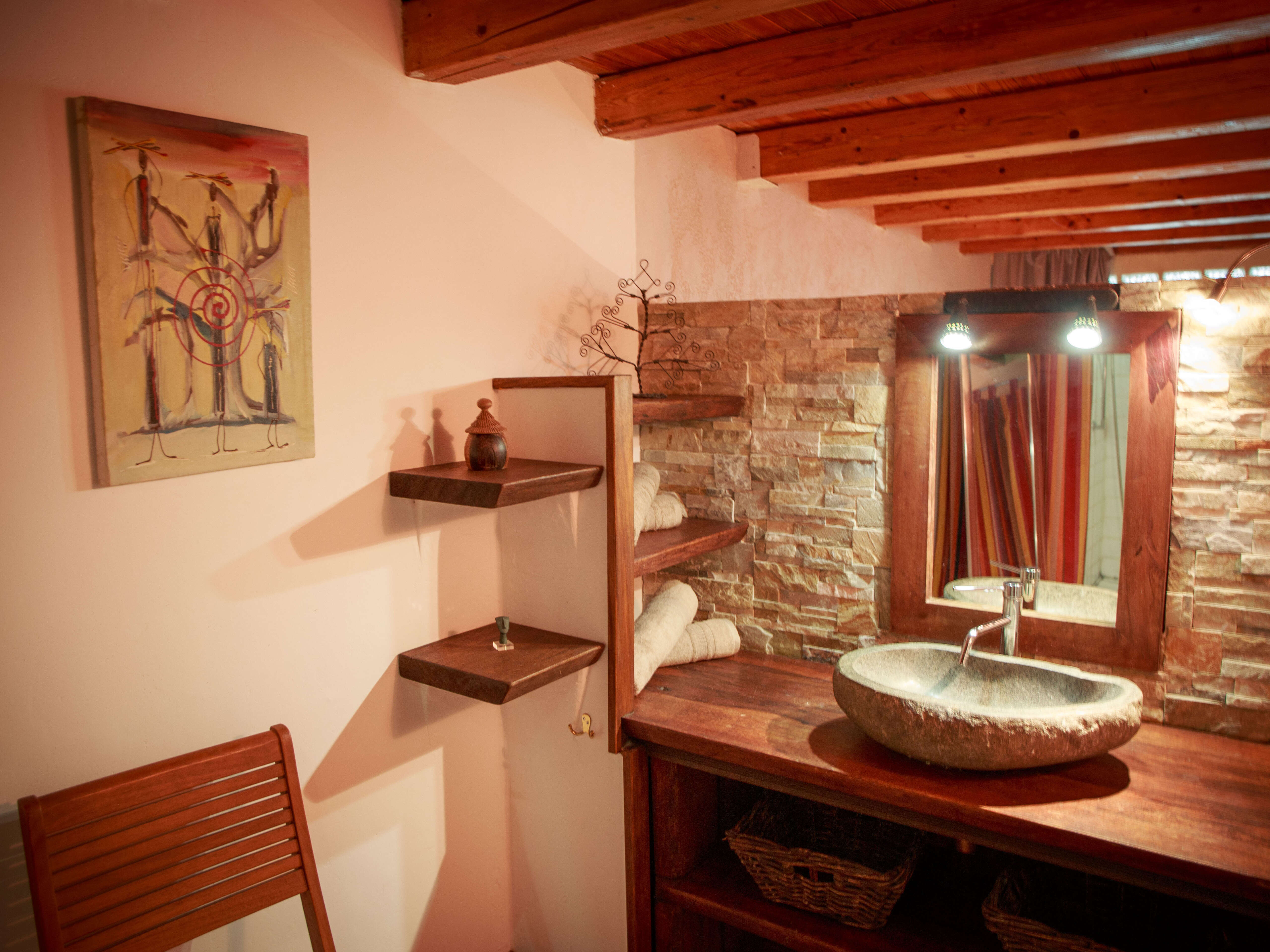 L’appartement se compose de deux chambres, chacune avec sa salle de bain privée (baignoire pour l’une, douche pour l’autre), ainsi que d’une terrasse calme avec vue sur jardin, sans passage.